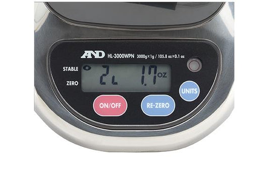 A&D HL-3000LWP Waterproof Scale, 3000 x 1 g