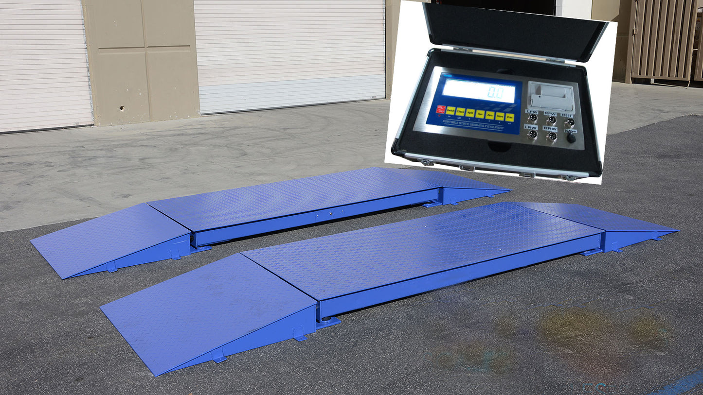| Description Tag | Heavy Duty - (2) axle scale pads, (4) ramps, an indicator with a built-in printer, and a power supply. Ask about installation & calibration in California. |