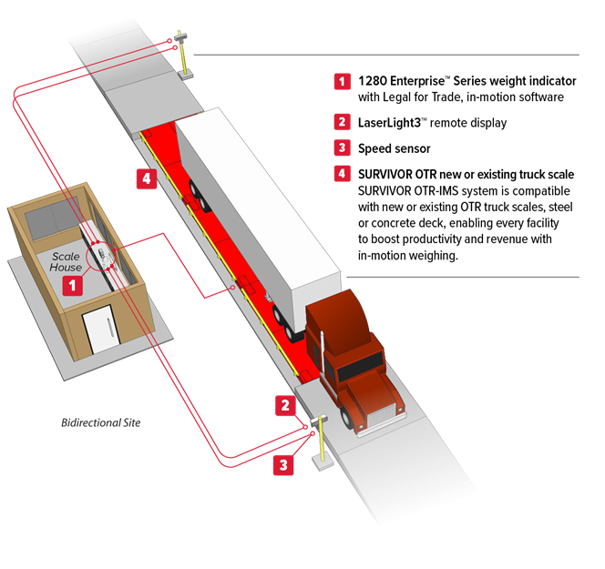 SURVIVOR OTR-IMS single-draft, Legal for Trade, weigh-in-motion truck scale. The SURVIVOR OTR-IMS is designed to improve throughput at high-volume facilities by maintaining a steady flow of traffic.